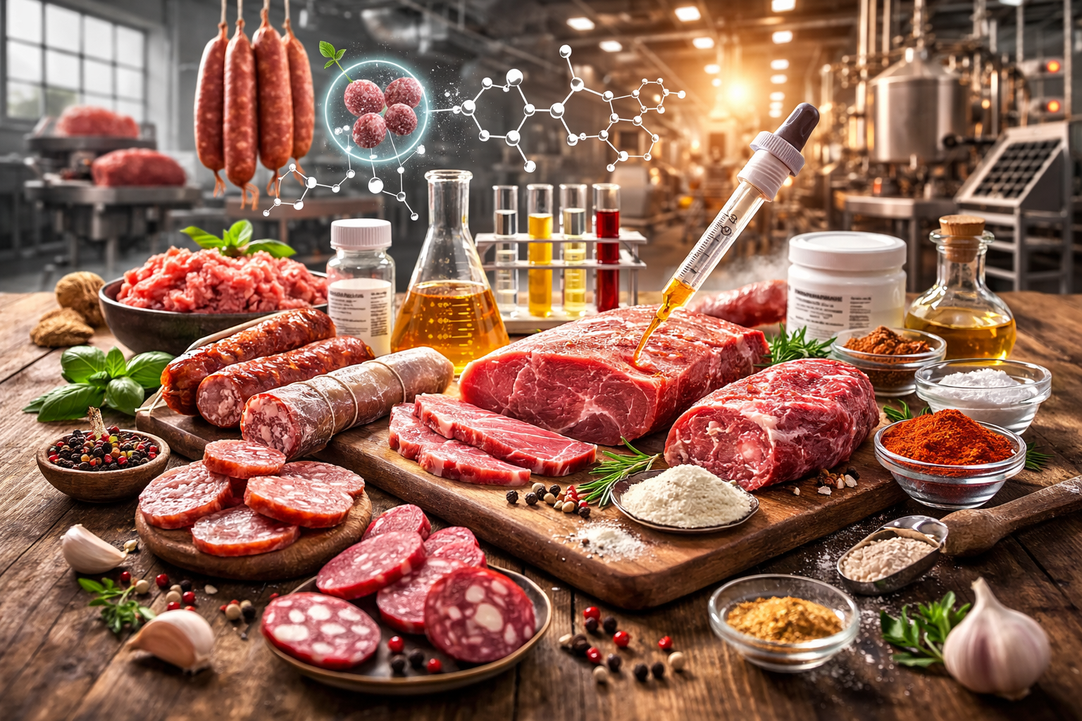 Ферменты — это природные биомолекулы-катализаторы, которые ускоряют химические реакции. В пищевой промышленности ферменты используются для улучшения качества продуктов, ускорения технологических процессов и создания уникальных вкусов и текстур. Особенно важную роль они играют в мясной отрасли, где от них зависит нежность, вкусовые свойства, безопасность и срок годности продукции.