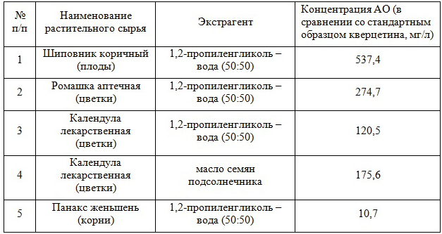 Способы получения, состав и антиоксидантная активность растительных экстрактов
